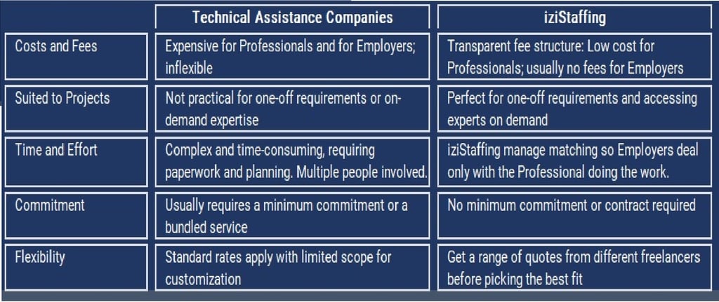 Benefits compared with Technical Assistance companies